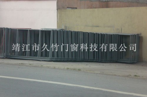 中悬钢天(侧)窗电动减速机和开窗机由同一机座连成一体水平安装时,用于启闭中悬钢天窗。用于启闭钢侧窗时,电动减速机装于中悬钢侧窗下部的墙壁上,为主动机构,此时开窗机分为上部和中部两部分,上部用于开启最高排窗扇,中部用于开启中间排窗扇。